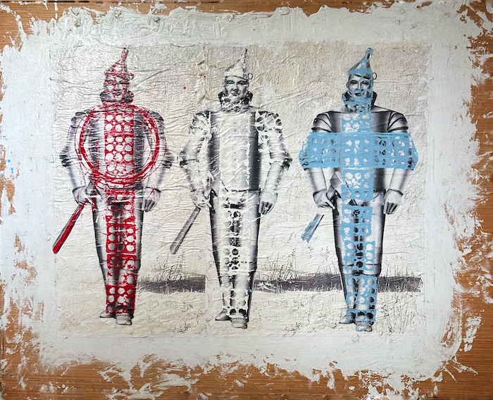 “The Third Man,” Acrylic paint, mixed media, repurposed oak — from the series “A New Hero Emerges”