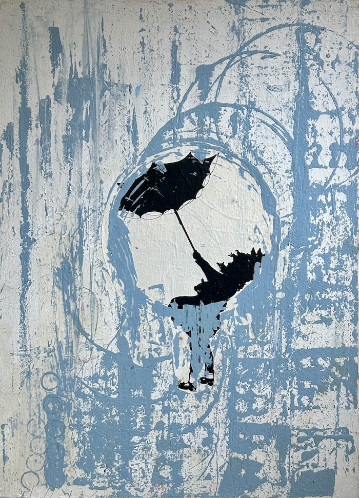 “Someone to Watch Over Me,” Acrylic paint and mixed media — from the series “A New Hero Emerges”