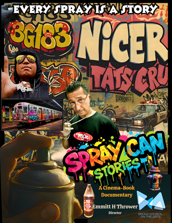 Directed by award-winning filmmaker Emmitt H Thrower, Spray Can Stories features not only in-depth personal interviews with legendary Tats Cru members BG 183 and Nicer, but also provides a fascinating glimpse into the entire hip-hop culture that emerged in the Bronx. After viewing the film, I had the opportunity to pose several questions to Emmitt: