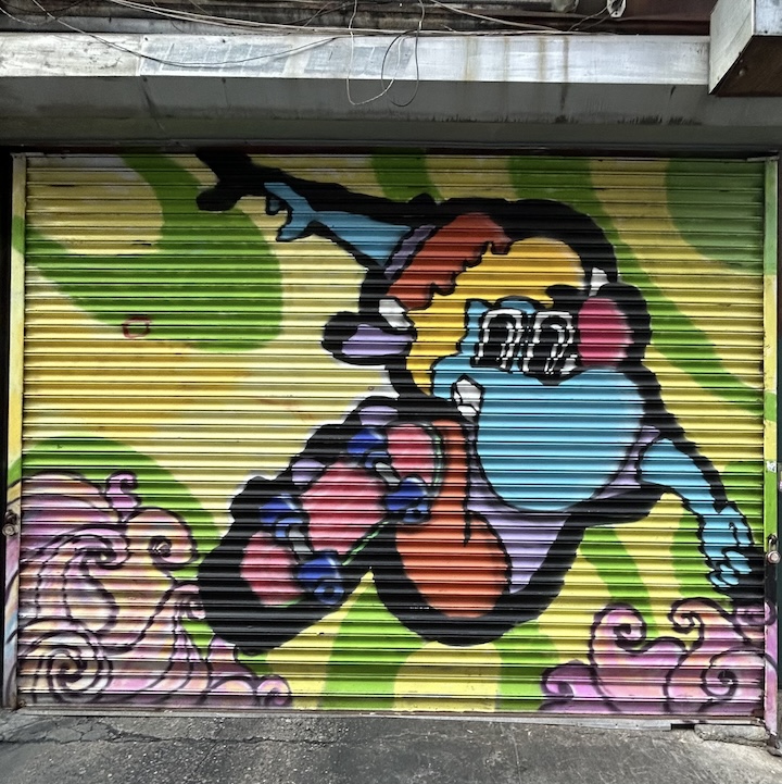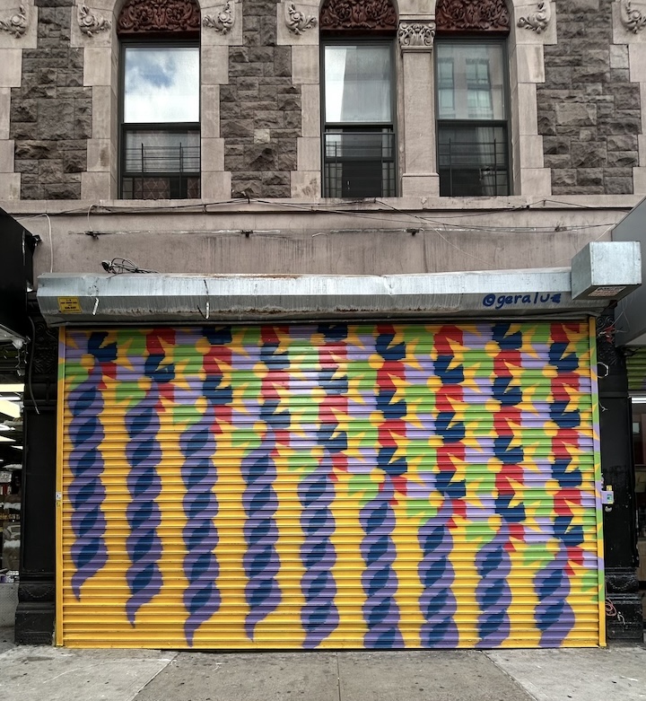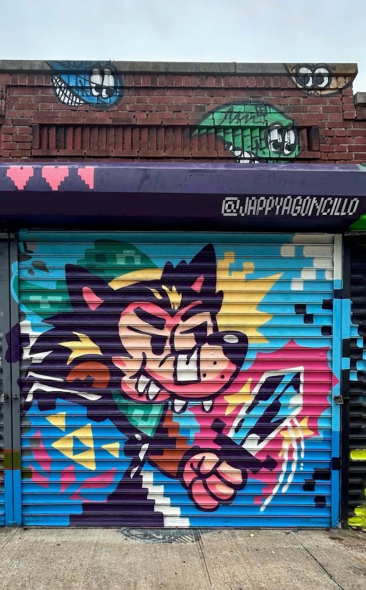 The chillingly playful shutter featured above was painted by Philippines-born, Queens-based artist Jappy Agoncillo at Welling Walls in Astoria, Queens. What follows are several more images of gates as we continue our ongoing series of NYC street art shutters.