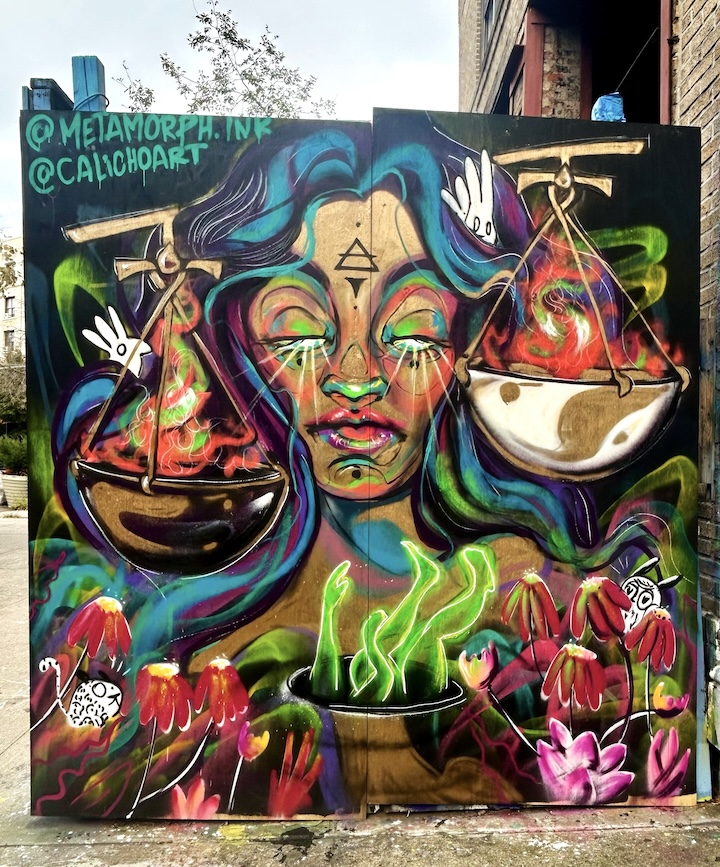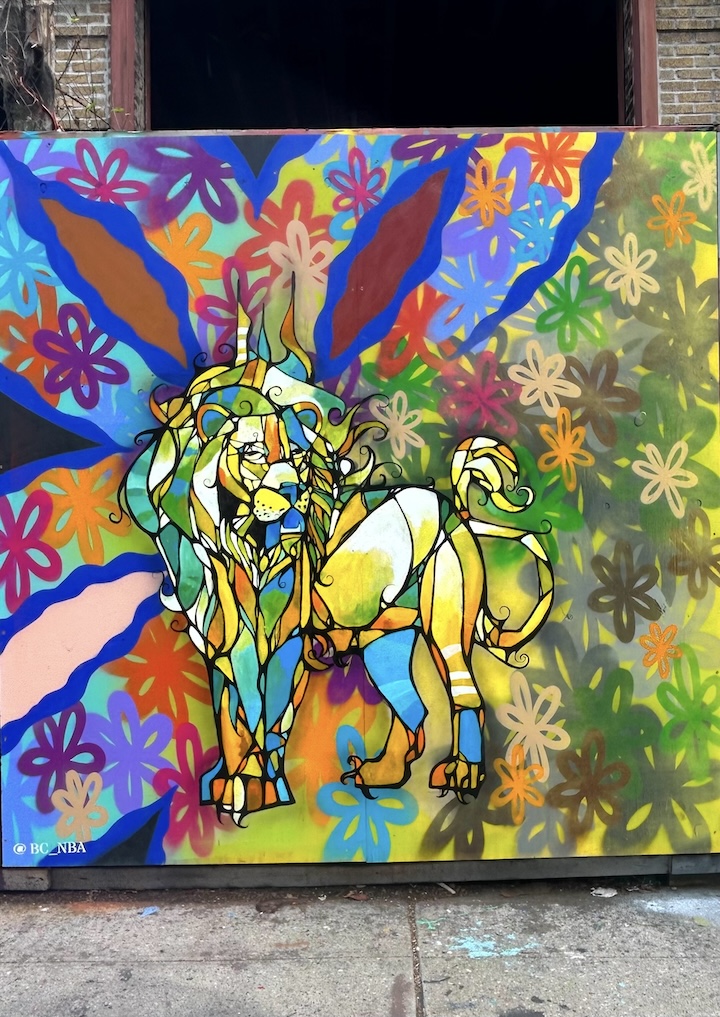 Underhill Walls — a model grassroots project in the Brooklyn neighborhood of Prospect Heights — has once again morphed. This time it is a canvas for 17 diversely enchanting murals reflecting the theme Urban Jungle. While visiting it last week, I had the opportunity to pose a few questions about Underhill Walls— its origins and more — to its indefatigable curator, Jeff Beler.